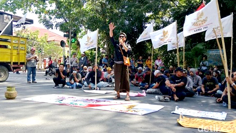 Koordinator aksi, Eko Rahadi, secara simbolis membawa tabung gas kosong milik istrinya ke lokasi demonstrasi. Aksi ini dilakukan sebagai bentuk protes nyata atas kondisi yang dialami masyarakat.